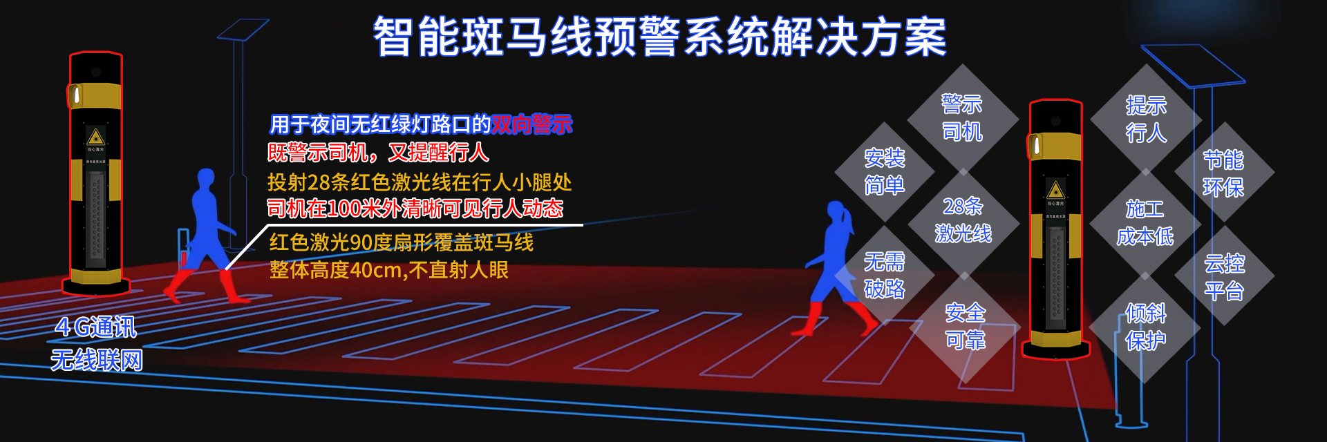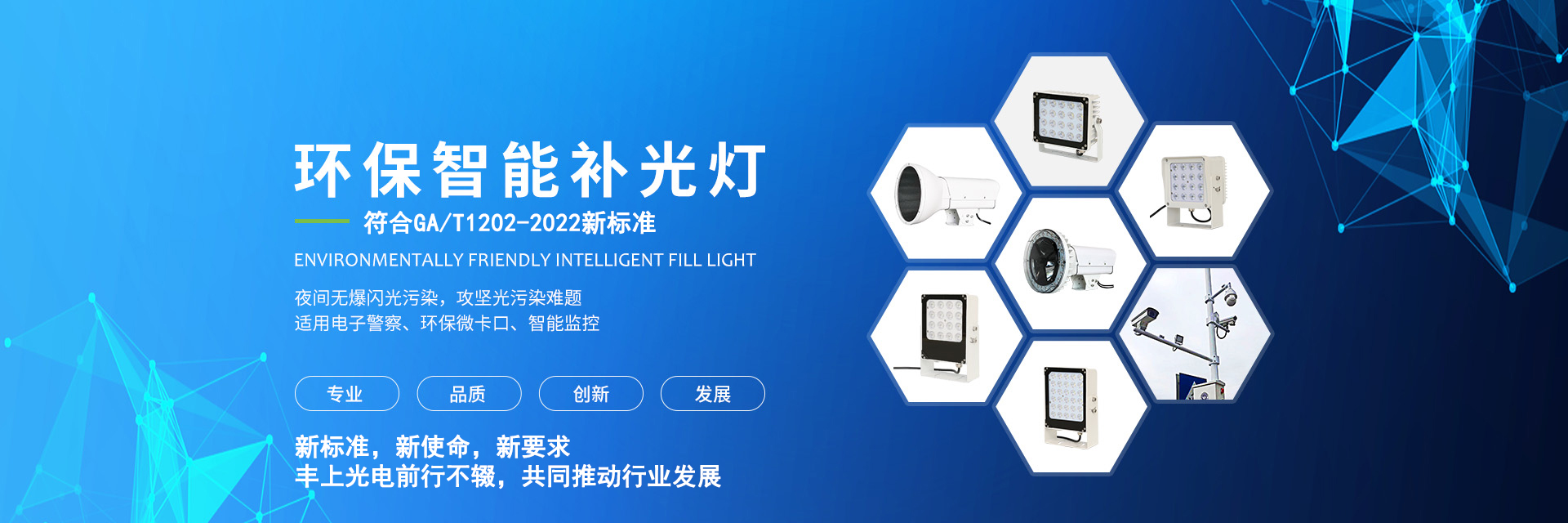????? 正是基于我司在智能交通領域15年的行業研究積淀,通過不斷的創新,推出了一系列響應國家環保號召減少光污染和防眩目的產品,公司所生產的LED補光燈、生態環保補光燈,LED頻閃燈等補光產品均符合《GA/T 1202-2022交通技術監控成像補光裝置通用技術條件》新標準;智能斑馬線預警系統更是獲得了中央電視臺、公安部道路安全研究中心以及各地方媒體的相繼報導。